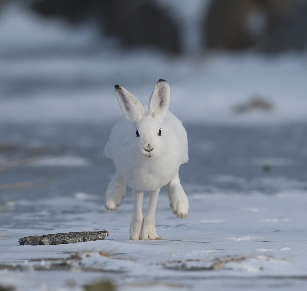 Å få besøke Ketil Olsen på Rolvsøya er en stor opplevelse. Hare sto selvsagt på programmet. Jeg og min bror dro forrige onsdag fra Narvik. 70 mil i bil. Værmeldingen var ikke den beste men vi dro nå allikevel. For å gjøre et langt mareritt kort: En mil fra Havøysund ble vi stående fast i snøen i et inferno av et uvær. Vi måtte vente i 2 timer til en hjullaster kom og dro oss løs. Vinden var nok godt over full storm. Vi var skikkelig glade når vi kunne innta vår hotellrom kalde og våte. Dagene på Rolvsøya gav alle typer vær og mye hare. For de som ikke har prøvd dette. Det går utrolig fort når hare springer pluss at man i mange tilfeller får hvitt mot hvitt. Så den som tror at det bare er å dra dit å hente blinkskudd har misforstått endel:)